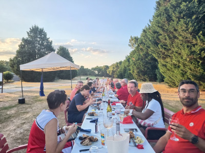 Dès la fin des matchs, le Golf des 24 Heures s’est transformé en véritable lieu de fête. Le barbecue, installé directement sur le départ du 1 et concoté par nos restaurateurs d'O'Resto du golf, a rassemblé tout le monde autour de grillades, douceurs et bonne humeur.