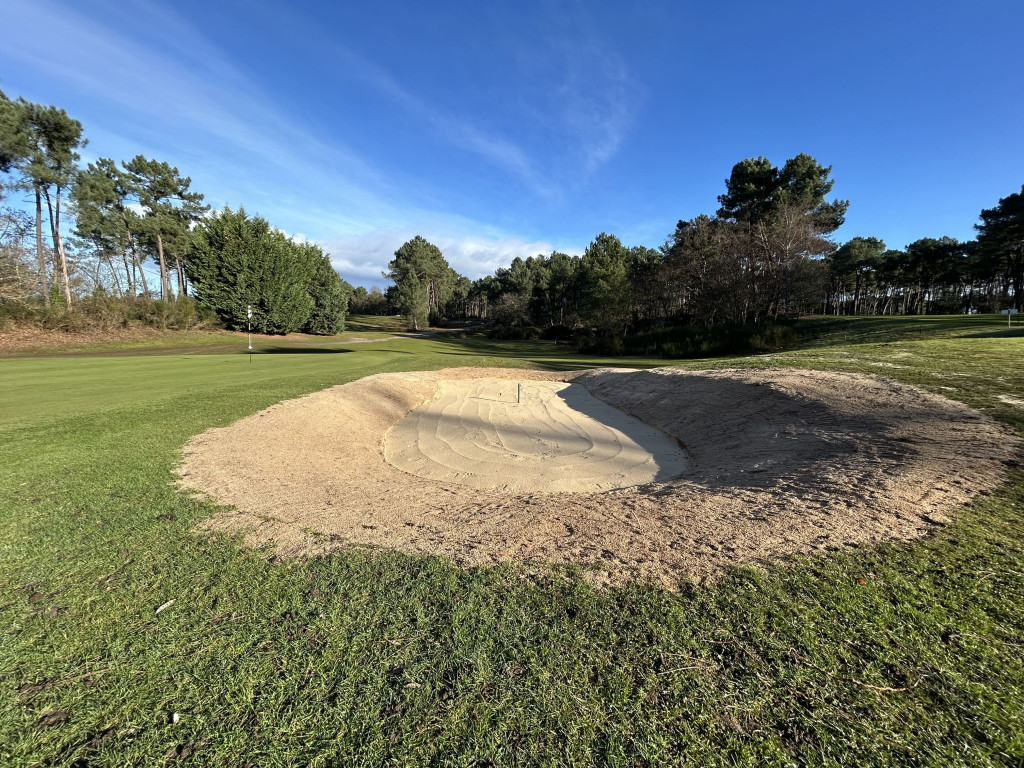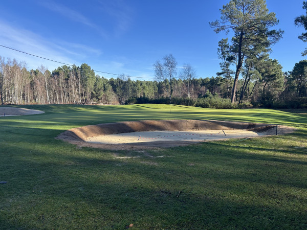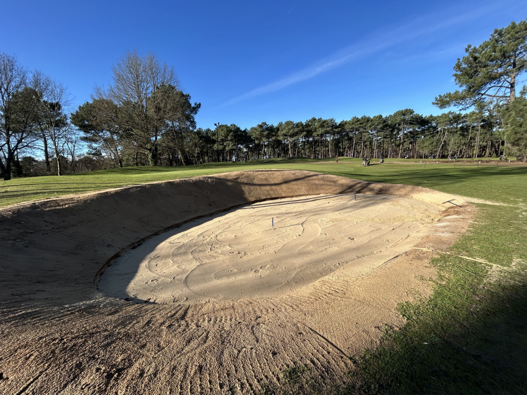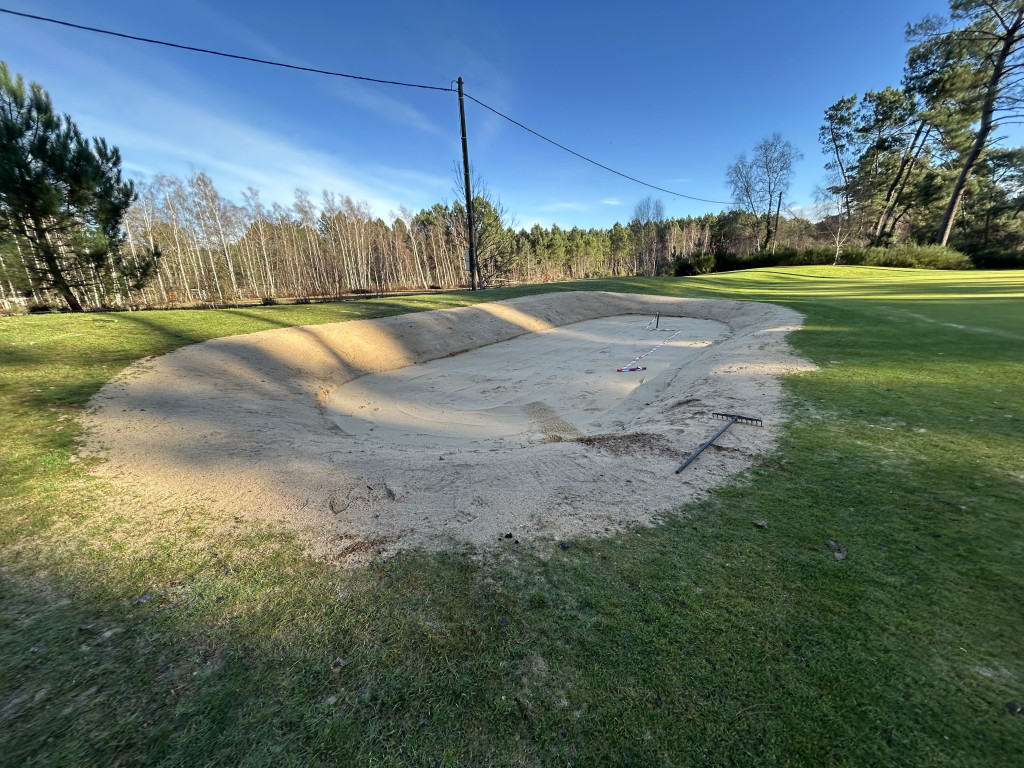 Les travaux de réfection des bunkers, confiés à la société Botanica, ont porté sur les trous 6, 11, 14 et 16 (après une 1ère phase en septembre 2025 concernant les trous 3, 7, 8 et 17), ainsi que sur le bunker d’entraînement situé à proximité du putting green.