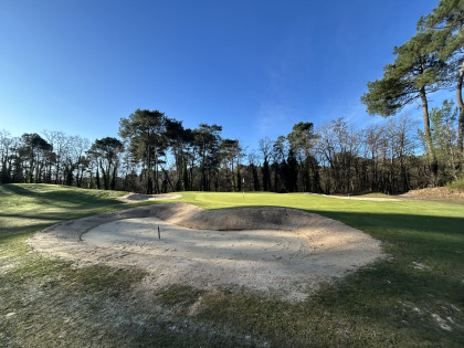 Le bunker situé à l’avant gauche du green du trou n°14 a été supprimé, dans un objectif de cohérence stratégique du tracé et d’optimisation de l’expérience de jeu. Cette modification permet d’améliorer la lisibilité du trou, tout en réduisant les contraintes d’entretien, sans altérer l’intérêt golfique.