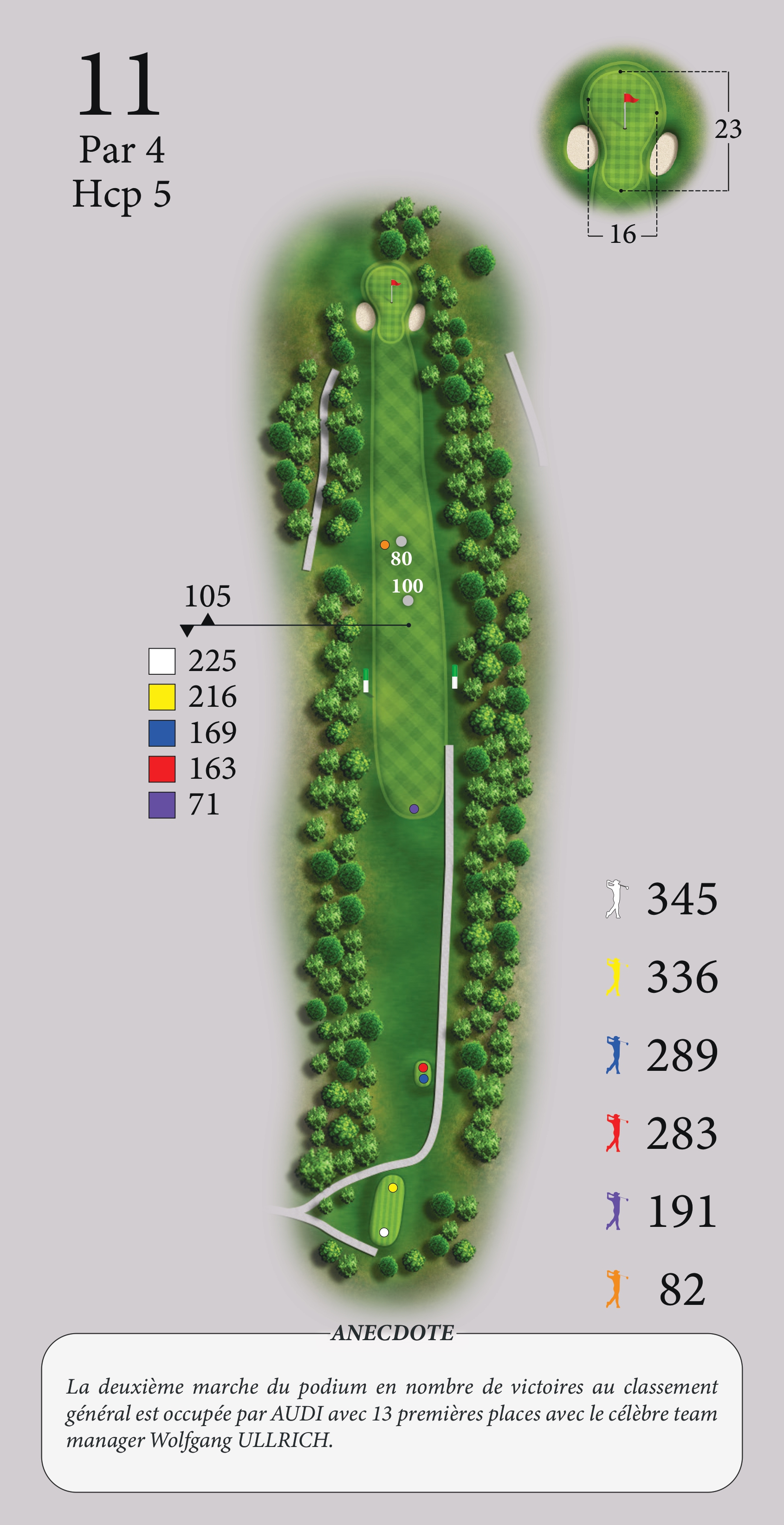 Attaquez le Fairway par la droite, jouez l'entrée du green à droite sur le 2ème coup.