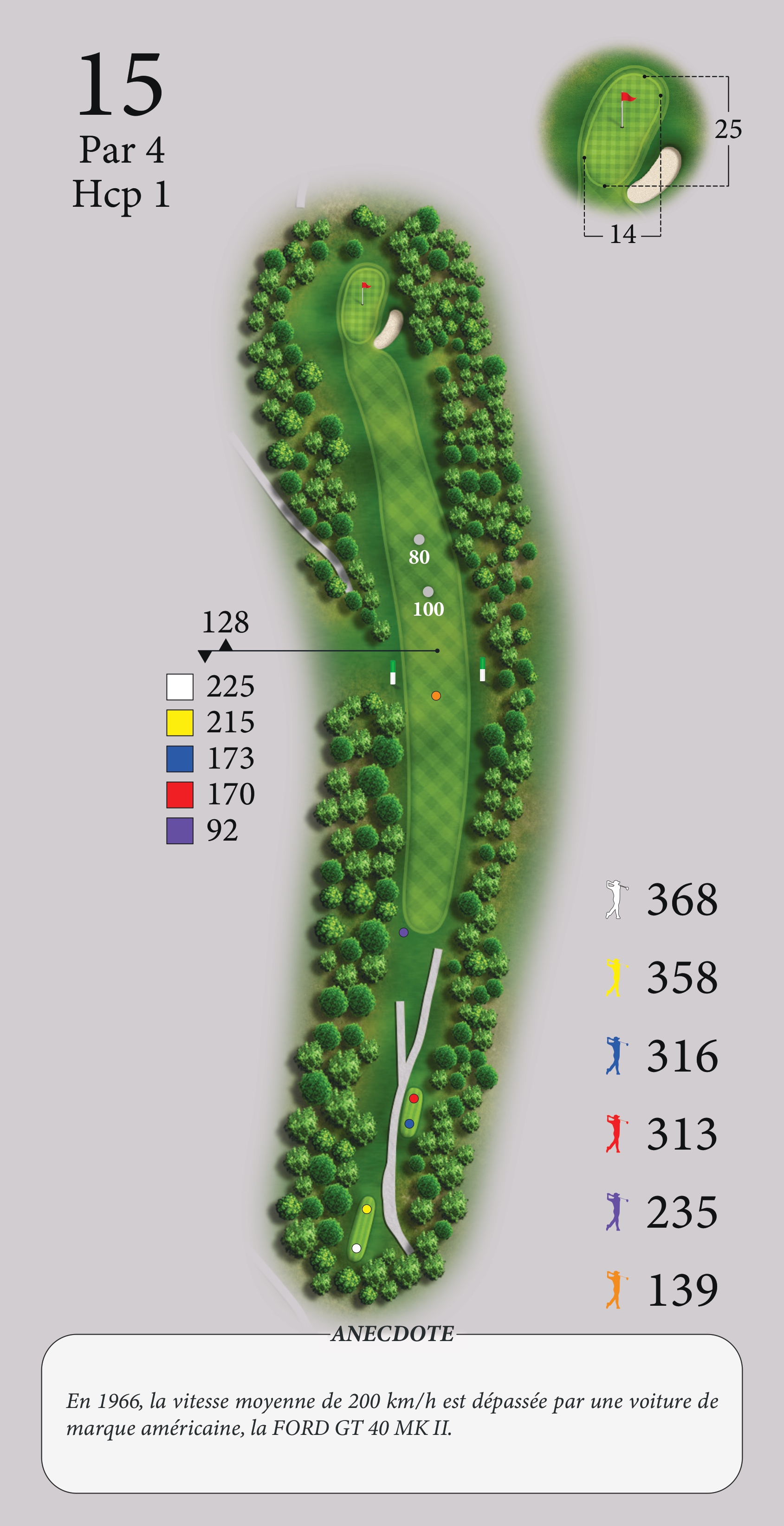 Mise en jeu sur la gauche sur le Fairway en devers...attaquez le green également par la gauche.