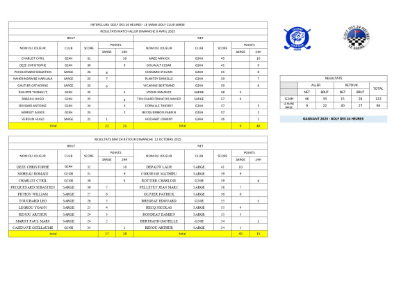 🏆Score cumulé : 122 à 98 en faveur du Golf des 24 Heures !